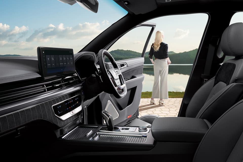 Rexton is filled with advanced infotainment that links to the digital cockpit to provide navigation and entertainment, 3D around view monitoring to help you park, and even a power tailgate that can open hands free as you approach.