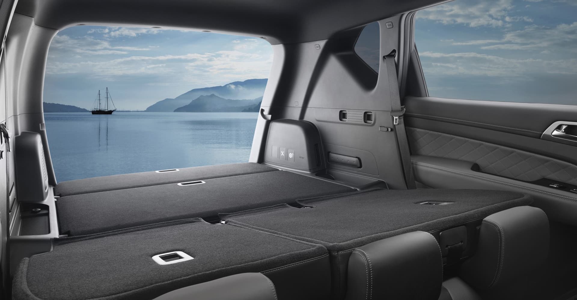 The Rexton is incredibly flexible with a huge capacity for luggage. Measured up to window level, Rexton offers 1,806 litres of rear boot space with both sets of seats down, 872 litres with the second-row seats up and 240 litres all seats up. The second row of seats split 60:40 (with ISOFIX) with a folding centre armrest and fold completely flat for large loads. The second-row seats folding 60:40, the third row can be folded individually 50:50 to give more flexibility. Access to the third-row rear seats is made easy by the double-folding second row seats.